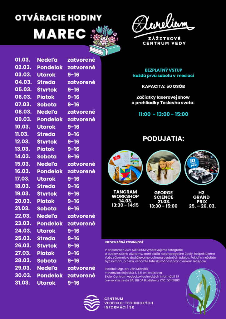 Nezabudnite, že každú prvú sobotu v mesiaci máme otvorené s BEZPLATNÝM VSTUPOM (7.marca).